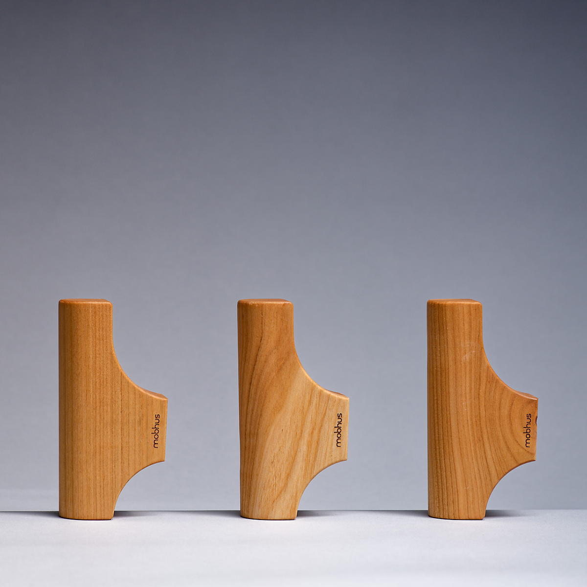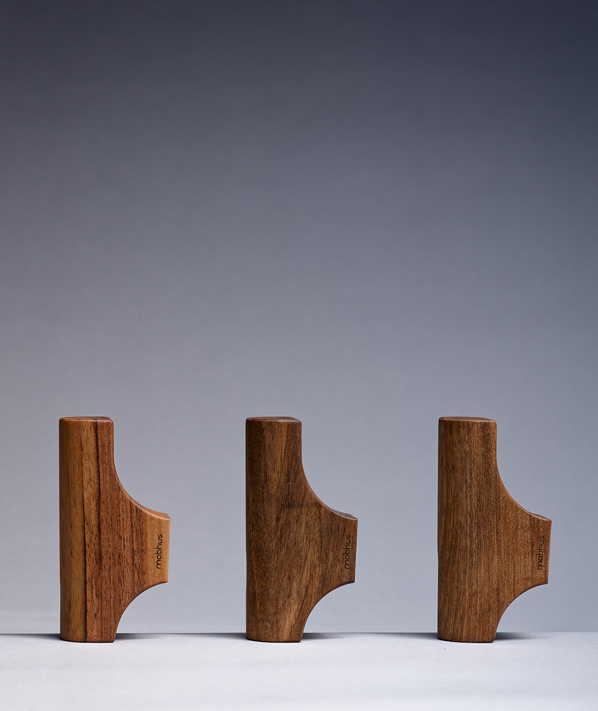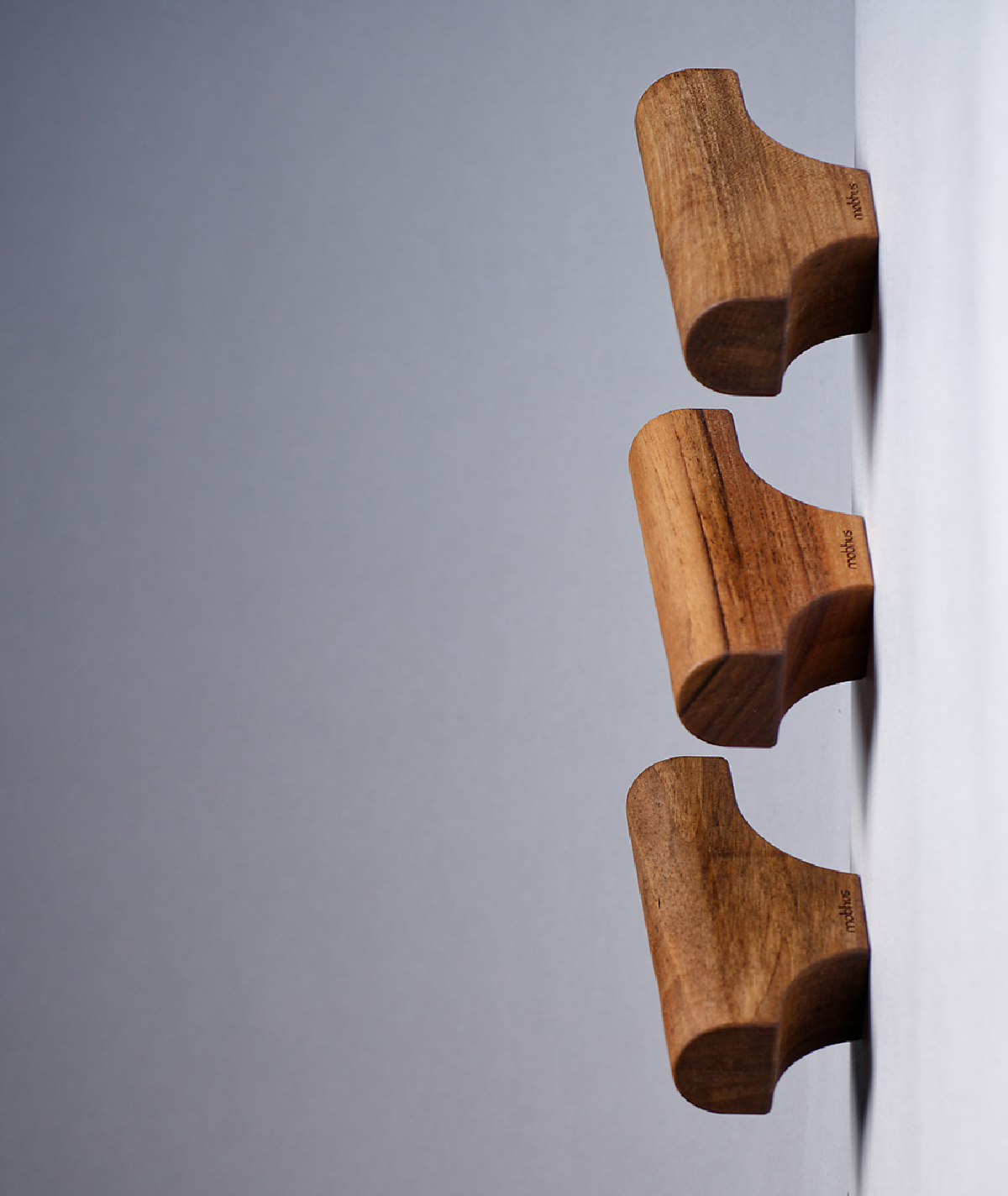 Les patères sont disponible en trois essences. Le frêne connu pour sa robustesse et sa longévité, se distingue par son veinage prononcé et ses reflets nacrés. Le noyer français, offre un teint chocolaté avec un effet rougeâtre. Le merisier, traditionnellement utilisé en ébénisterie, présente un pigment brun rouge naturel. Elles sont également disponible en frêne, teinté noir. La finition est une huile naturelle Rubio Monocoat, garantie sans COV, elle vient protéger et y sublimer le toucher.