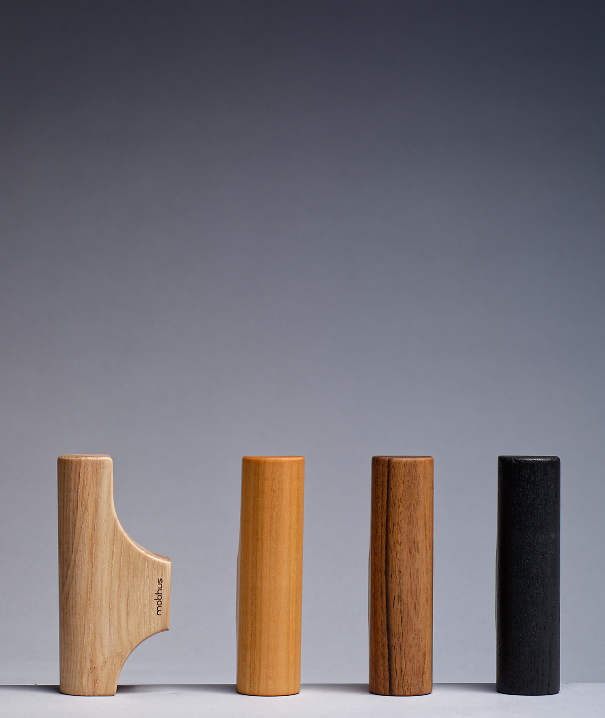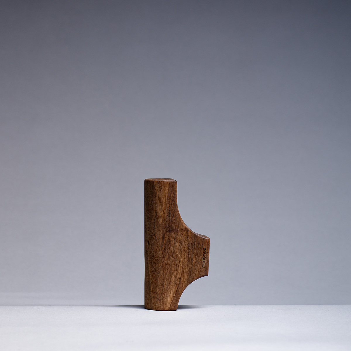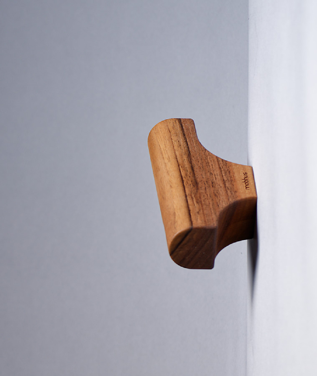 Les patères sont disponible en trois essences. Le frêne connu pour sa robustesse et sa longévité, se distingue par son veinage prononcé et ses reflets nacrés. Le noyer français, offre un teint chocolaté avec un effet rougeâtre. Le merisier, traditionnellement utilisé en ébénisterie, présente un pigment brun rouge naturel. Elles sont également disponible en frêne, teinté noir. La finition est une huile naturelle Rubio Monocoat, garantie sans COV, elle vient protéger et y sublimer le toucher.