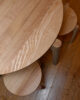 Cette table est fabriquée en bois massif français et disponible en trois essences. Le frêne connu pour sa robustesse et sa longévité, se distingue par son veinage prononcé et ses reflets nacrés. Le noyer français, offre un teint chocolaté avec un effet rougeâtre. Le merisier, traditionnellement utilisée en ébénisterie, présente un pigment brun rouge naturel. Elle est également disponible en frêne teintée noire. Sa finition est une huile naturelle Rubio Monocoat, garantie sans COV, elle vient protéger et y sublimer le toucher.