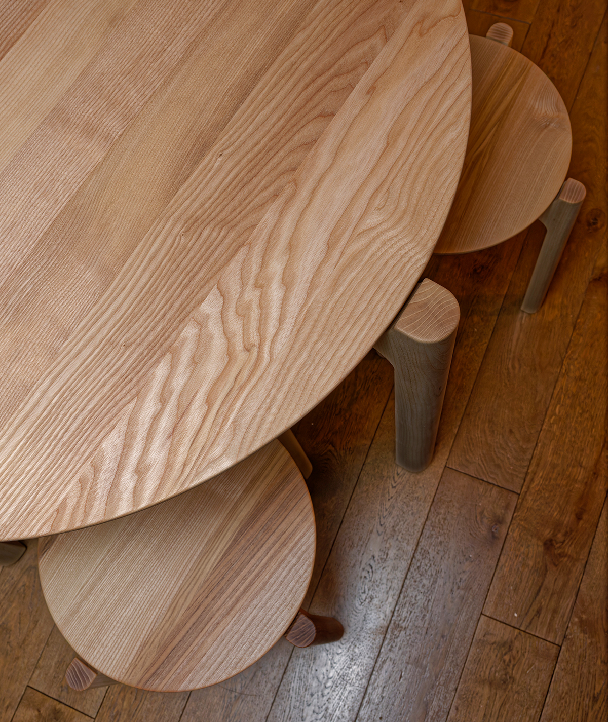 La table à manger ronde se marie harmonieusement avec les tabourets de la collection. Placée au centre de la salle à manger, elle adoucit les angles de la pièce. Une table ronde créée une atmosphère conviviale lors des repas.